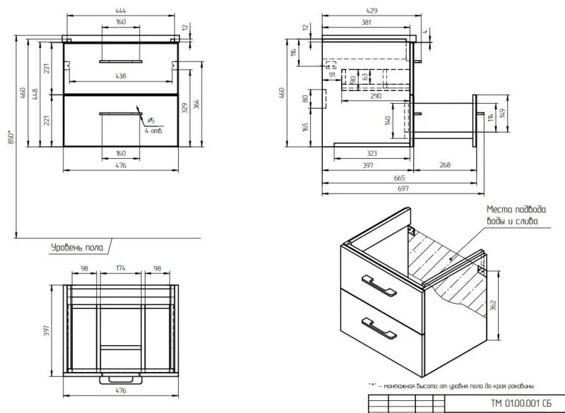 ВНИМАНИЕ: В КОМПЛЕКТАЦИЮ ДАННОГО АРТИКУЛА РАКОВИНА И СМЕСИТЕЛЬ НЕ ВХОДЯТ!