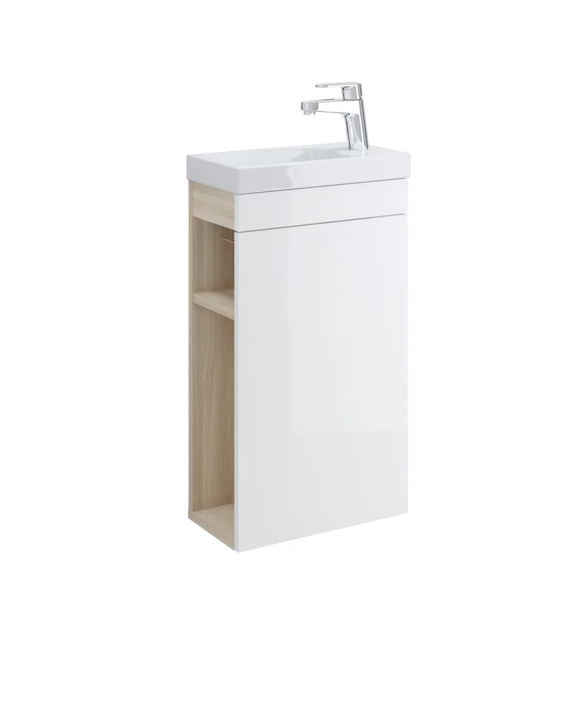 Эргономичный и функциональный дизайн этой тумбы под раковину поможет поддержать в вашей ванной комнате чистоту и порядок. Гладкие глянцевыые фасады без ручек легко моются, а встроенные в них механизмы push-to-open позволяют открыть ящик даже когда руки заняты. В дополнение к тумбе можно приобрести органайзеры для хранения косметики и небольших предметов. Сбоку к тумбе прикреплен рейлинг, на который можно разместить полотенца