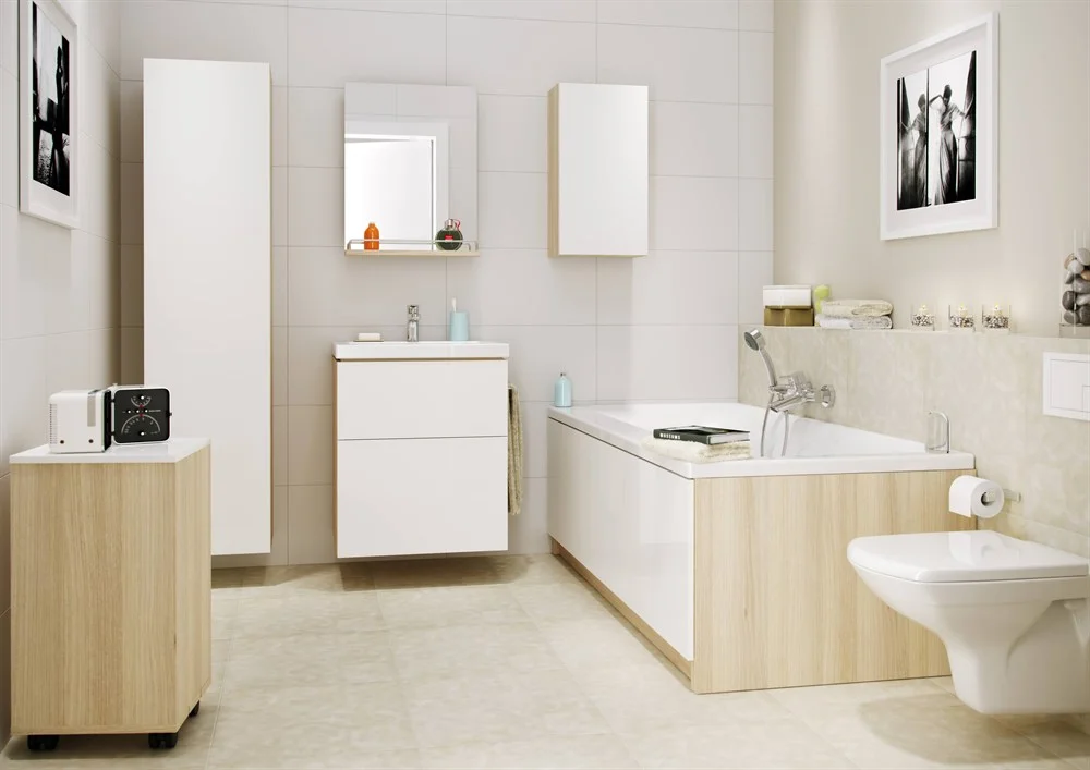 Эргономичный и функциональный дизайн этой тумбы под раковину поможет поддержать в вашей ванной комнате чистоту и порядок. Гладкие глянцевыые фасады без ручек легко моются, а встроенные в них механизмы push-to-open позволяют открыть ящик даже когда руки заняты. В дополнение к тумбе можно приобрести органайзеры для хранения косметики и небольших предметов. Сбоку к тумбе прикреплен рейлинг, на который можно разместить полотенца
