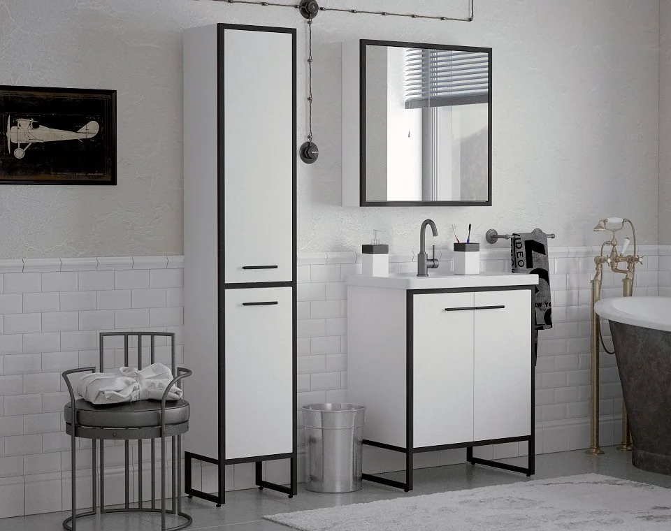Тумба под раковину Corozo Айрон 60, черный/белый, Фостер 60 SD-00000399