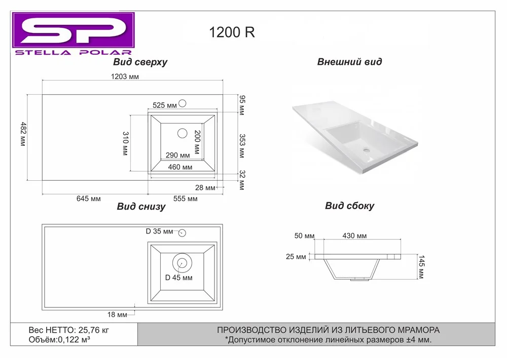 Тумба оснащена 2 выдвижными ящиками. Нижний ящик - на шариковых направляющих, верхний - скрытого монтажа с доводчиками. Верхний ящик высотой 70 мм с выпилом под коммуникации, нижний - высотой 110 мм. Для крепления к стене есть подвесы. Фасадная часть - МДФ в плёнке ПВХ.