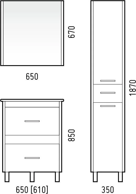 У тумбы 2 выдвижных ящика. Высота ящиков 170 мм, верхний ящик разделен пополам. Тумба стоит на 4 металлических опорах. Боковины выполнены из ЛДСП 26 мм толщиной.