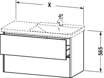 2 выдвижных ящика, верхний ящик, вкл. вырез и крышку для сифона, для P3 Comforts # 233485, раковина справа