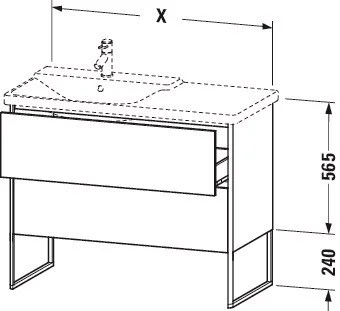 2 выдвижных отделения, верхний ящик, вкл. вырез и крышку для сифона, встроенные ножки с регулировкой по высоте, для P3 Comforts # 233385, раковина слева