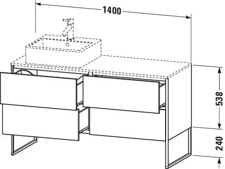 4 выдвижных отделения, встроенные ножки с регулировкой по высоте