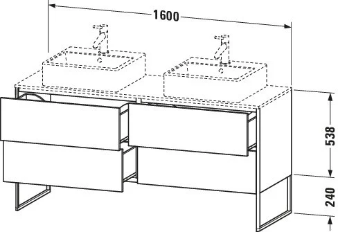 4 выдвижных отделения, встроенные ножки с регулировкой по высоте