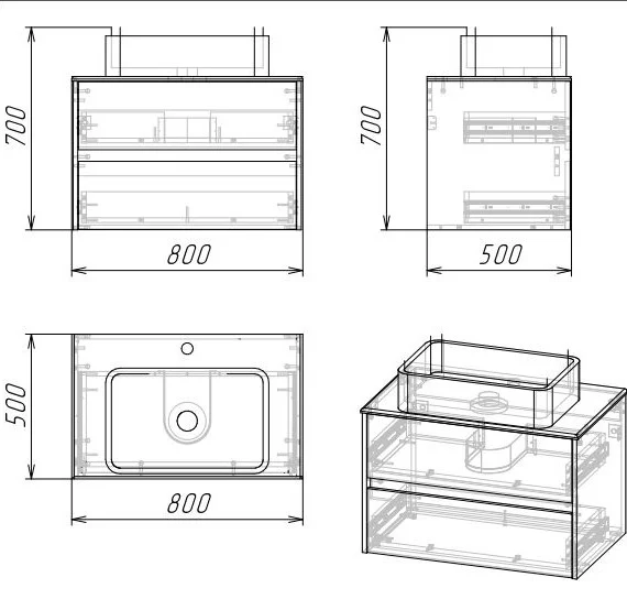 Тумба имеет 2 выдвижных ящика, которые оснащен доводчиками с системой плавного закрывания.