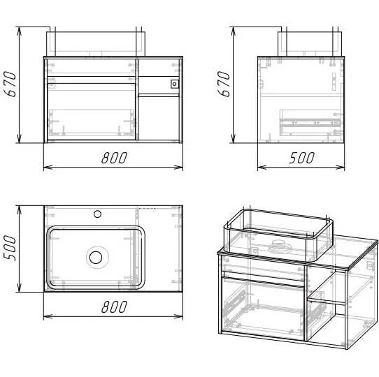 Тумба имеет выдвижной ящик, который оснащен доводчиками с системой плавного закрывания, а открытые полки справа обеспечиваю быстрый достум к аксессуарам