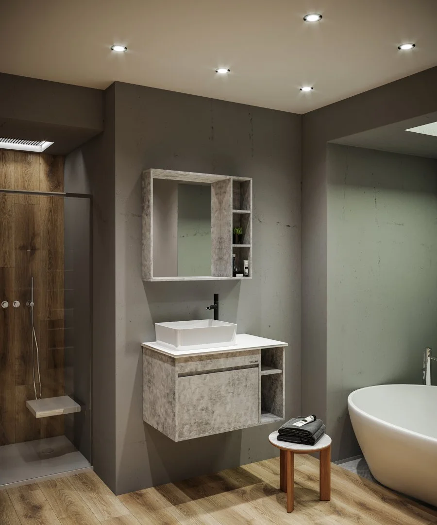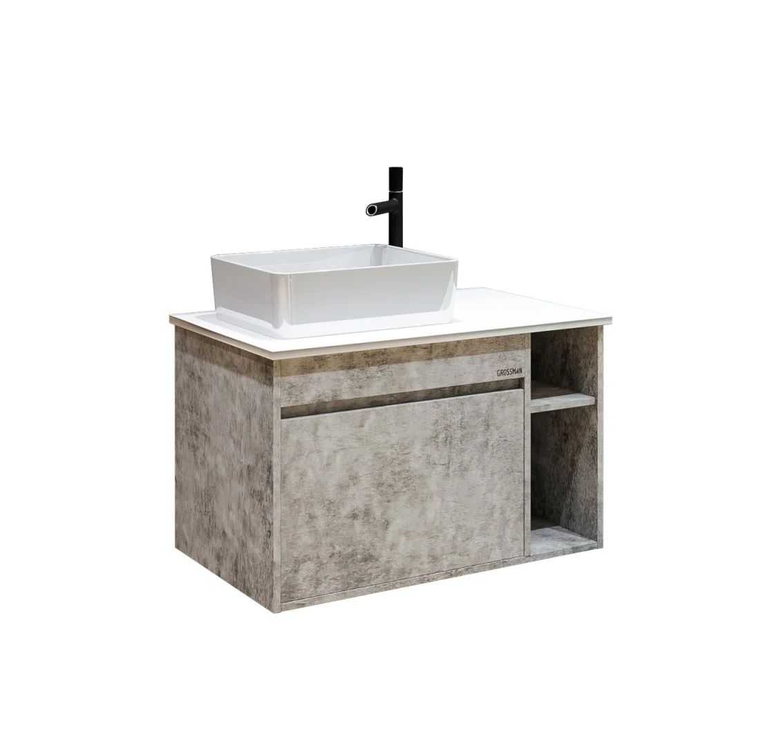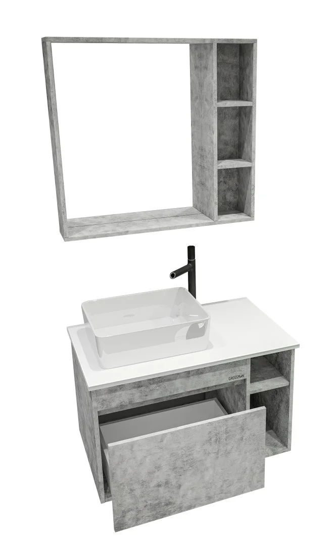 Тумба подвесная Фалькон 80 см отражает современные тенденции в дизайне мебели для ванных комнат: и создана для тех, кто ценит современный лаконичный дизайн, холодный эффект бетона.