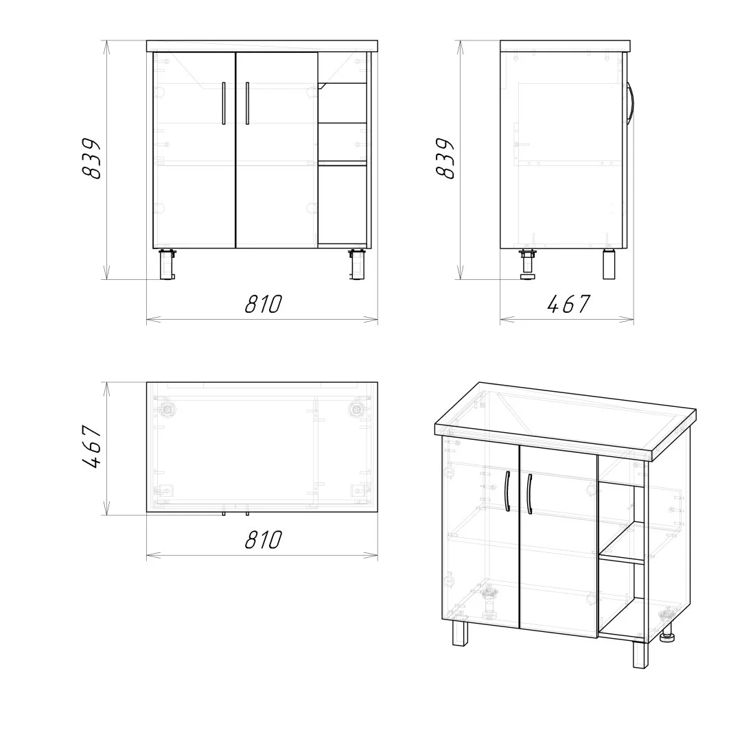 Корпус тумбы выполнен из ЛДСП, фасад - из МДФ в матовой пленке, устойчивый к перепадам температур и высокой влажности.