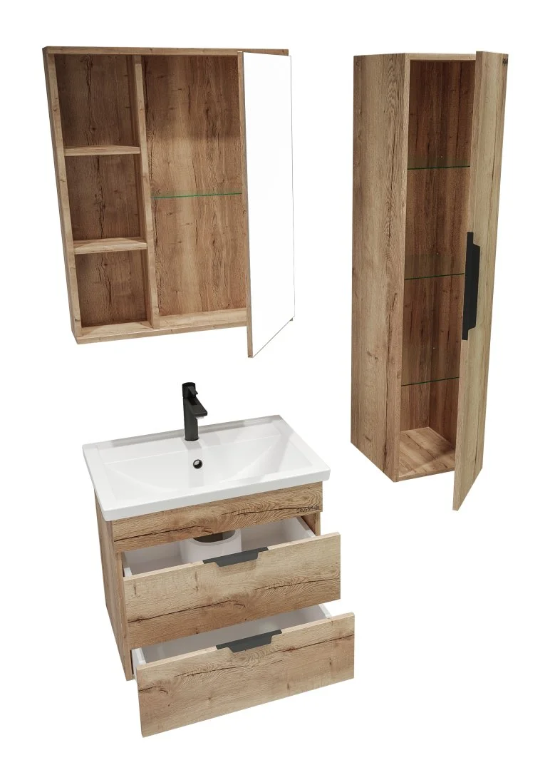 Тумба подвесная Форта 60 см -роскошная текстура и натуральный цвет дуба, а матовые металлические ручки добавляют современный дизайн и строгий стиль.