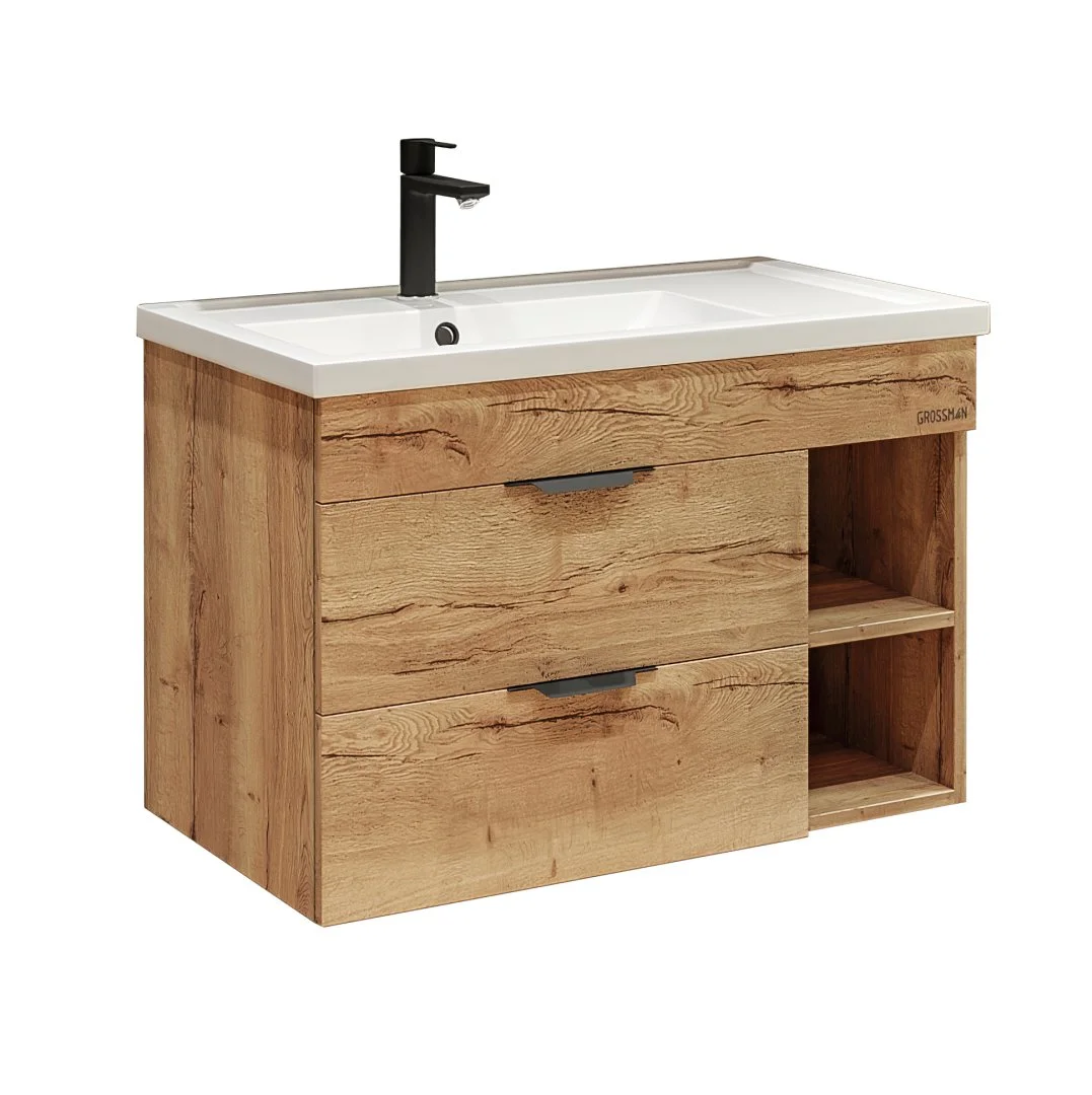 Тумба подвесная Форта 80 см -роскошная текстура и натуральный цвет дуба, а матовые металлические ручки добавляют современный дизайн и строгий стиль.