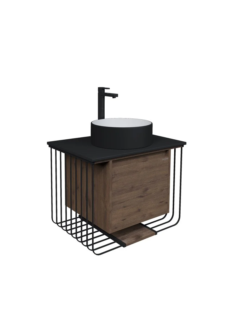 Тумба подвесная Винтаж 70 см решает задачу грамотной и компактной организации хранения вещей, сохранив при этом уютный интерьер. Тумбу обрамляют черные металлические конструкции,которые служат не только декором, но и являются дополнительным местом для хранения текстиля. Выдвижной ящик вмещает в себя аксессуары и предметы гигиены разных габаритов. Корпус тумбы выполнен из влагостойкого ЛДСП, фасады ящиков - из МДФ в структурной пленке, столешница из МДФ ПВХ черный матовый устойчивых к перепадам температур и высокой влажности, крепится к стене.