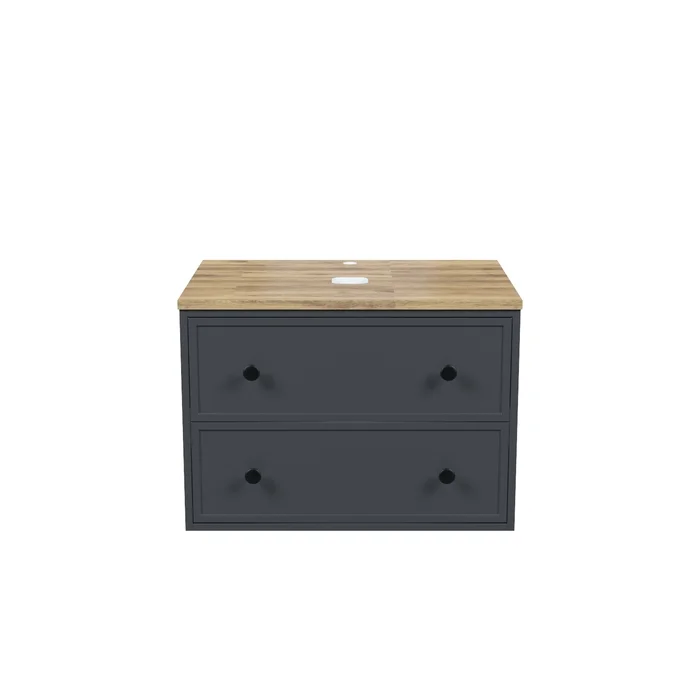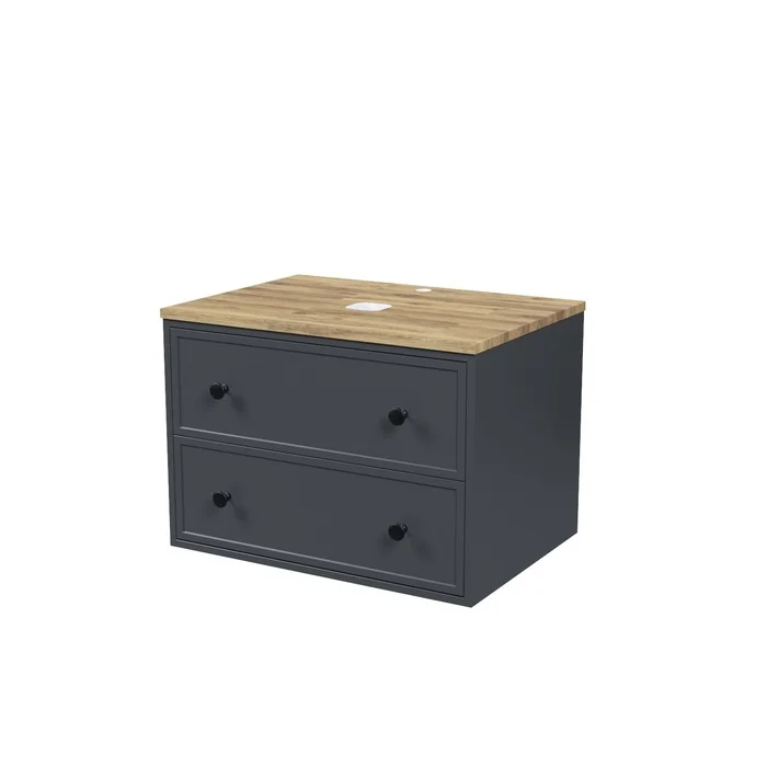 Компактная подвесная тумба Torr трендового темно-серого цвета со столешницей из клееного натурального дуба. Сочетает в себе узнаваемый стиль и практичность популярного скандинавского дизайна. Ее четкие формы, теплый цвет дерева, фасады с декоративной филенкой, круглые ручки смотрятся гармонично и впишутся в любой современный интерьер. Подойдет любой накладной умывальник, покупается отдельно.