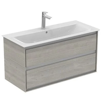 CONNECT AIR Подстолье для умывальника 100 см для подвесного монтажа, с 2-мя ящиками, система плавного закрытия, с крепежом. Для монтажа с умывальником Connect Air Vanity 104 см E027401 или умывальником-чашей Connect Air 40 см E034701 со столешницей E0851 или умывальником-чашей Connect Air 60 см E034801 со столешницей E0851. Рекомендуется сифон Space Saving EE23033967 (заказывается отдельно)