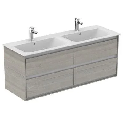 CONNECT AIR Подстолье для умывальника 130 см для подвесного монтажа, с 4-мя ящиками, система плавного закрытия, с крепежом. Для монтажа с умывальником Connect Air Vanity 134 см E027201. Рекомендуется сифон Space Saving EE23033967 (заказывается отдельно)