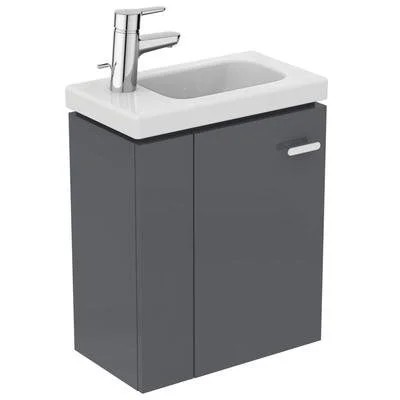 CONNECT SPACE Подстолье 45 см, узкая проекция, глубина подстолья 25 см, настенный монтаж. Специальная L-форма двери, экономящая пространство, максимальное открытие 105o. Съемная полка на дверце для доступа без необходимости полного открытия. Плавное закрытие. Ручка в комплекте. Левая версия. Для монтажа с умывальником E136201