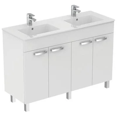 TEMPO Подстолье для умывальника 120 см, для напольного монтажа, с 4-мя дверцами, система плавного закрытия, 6 регулируемых ножек, ручки в комплекте (4 шт.), для монтажа с умывальником Tempo 120 см E053401. Сифон Space Saving EE23033967 заказывается дополнительно