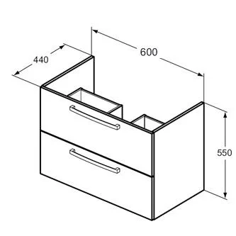 TEMPO Подстолье для умывальника 600 мм с 2-мя ящиками, для подвесного монтажа, система плавного закрытия, 2 ручки, с крепежным комплектом. Для монтажа с умывальником Tempo 61 см E066801.