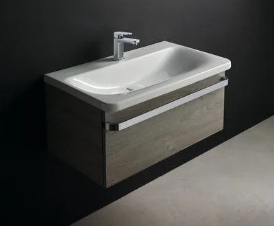 TONIC II Подстолье для умывальника 80 см, для подвесного монтажа, с 1-м ящиком, система плавного закрытия. В комплекте: крепеж, сифон New Space IdealFlow - 1 шт., светодиодная подсветка - 1 шт. внутри ящика, с сенсором на открытие, без подключения к сети, с батарейкой, подзарядка от USB. Ручка в комплект не включена. Для монтажа с умывальником Tonic II 80 см K0839 (с отверстием под смеситель) или с симметричной чашей Tonic II 55 см K0834 со стеклянной белой столешницей R4331SA и настенным смесителем или с асимметричной чашей Tonic II 55 см K0833 со стеклянной белой столешницей R4335SA с отверстием под смеситель с удлиненным корпусом. Внимание: столешница заказывается дополнительно!