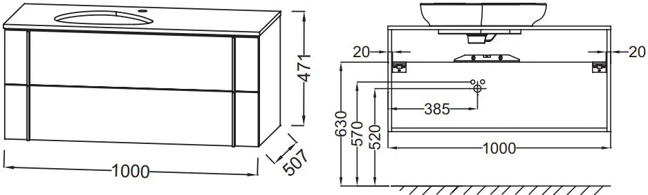 Nouvelle Vague 100х51,2х46,8см, тумба под раковину, белый, 2 ящика с доводчиком, подвесная, для раковины-чаши, арт. EB3040-N18, Jacob Delafon