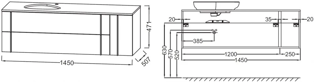 Nouvelle Vague 145х51х47см, тумба под раковину, фактурный дуб, 2 ящика, 1 дверца, арт. EB3044-E73, Jacob Delafon