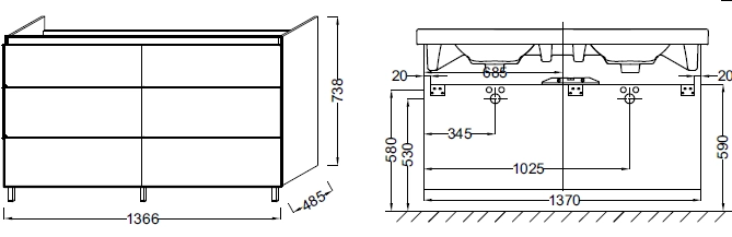 Тумба под раковину 137 см. Odeon Up, Jacob Delafon.