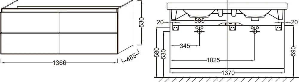 Размеры: 136,50 x 48,50 x 53 см