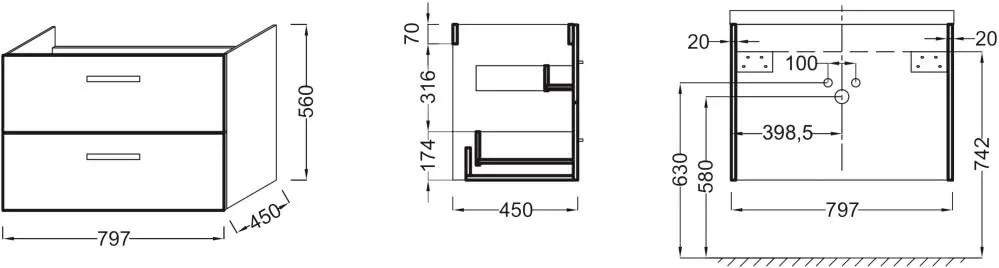 Тип мебели: 2 выдвижных ящика с механизмом «плавное закрывание»