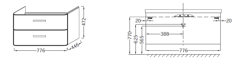2 выдвижных ящика с механизмом «плавное закрывание».
