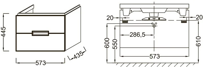 Тип мебели: 2 выдвижных ящика с механизмом «плавное закрывание»