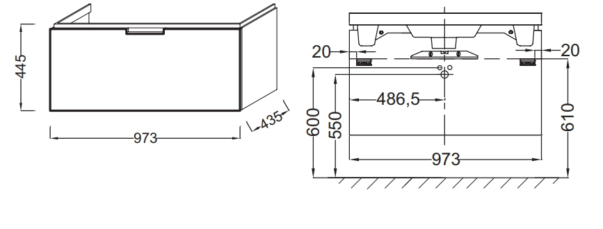 Reve 97,3х43,5х44,5см, тумба под раковину, глянцевый белый, 1 выдвижной ящик, арт. EB1132-HU, Jacob Delafon