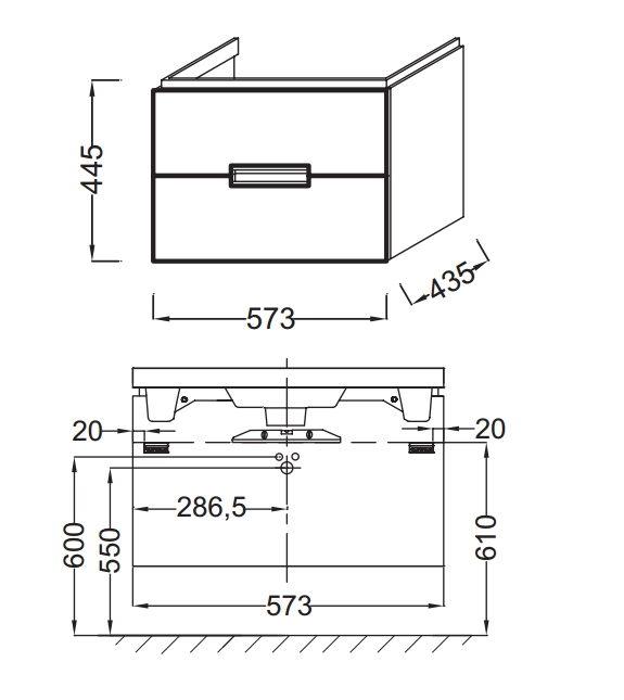 Габариты (шгв): 57.3 x 43.5 x 44.5