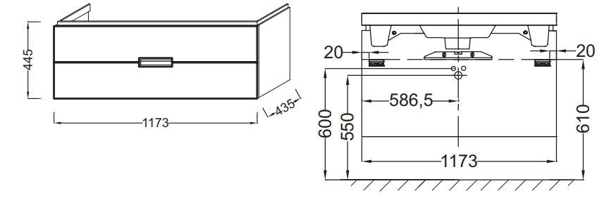 Reve 117х43,5х44,5см, тумба под раковину, глянцевый белый, 2 выдвижных ящика, арт. EB1137-HU, Jacob Delafon
