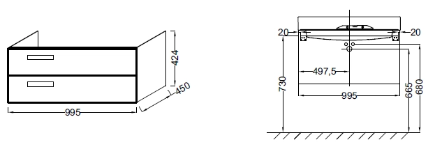 Размер тумбы: 99,50 x 45 x 42,40 см