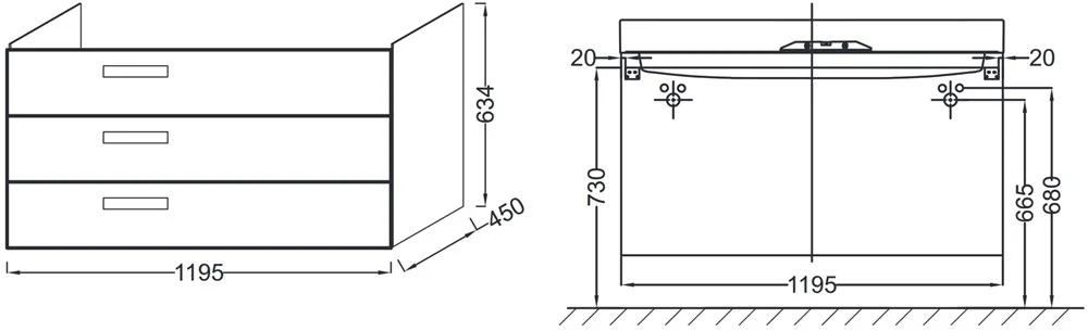 Размеры: 119,50 x 45 x 63,40 см.