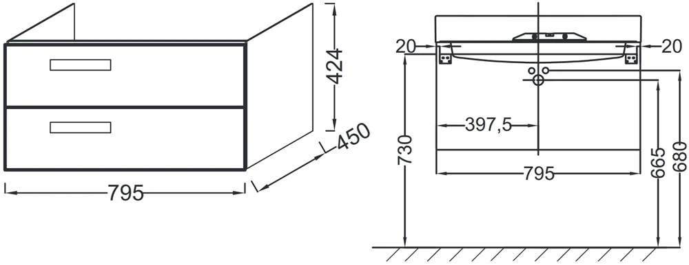 Место для хранения: 2 выдвижных ящика с механизмом «плавное закрывание»