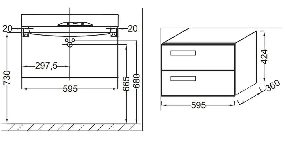 2 выдвижных ящика с механизмом "плавное закрывание"