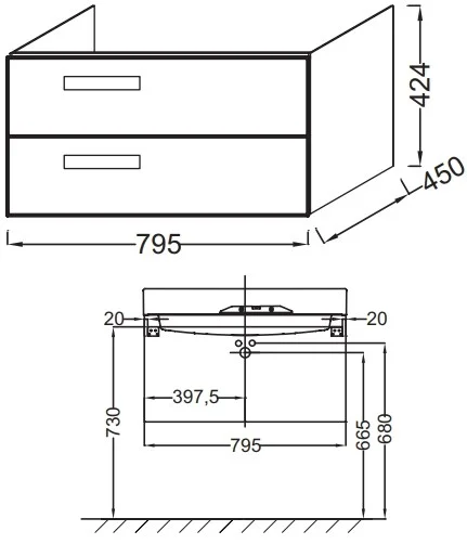 Тип мебели: 2 выдвижных ящика с механизмом «плавное закрывание»