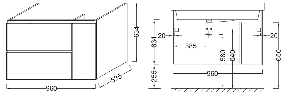 Soprano 96х53,5х63,4см, тумба под раковину, розово-бежевый/матовый базальт, 2 ящика, арт. EB1334-N08-N09, Jacob Delafon