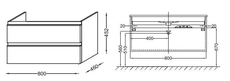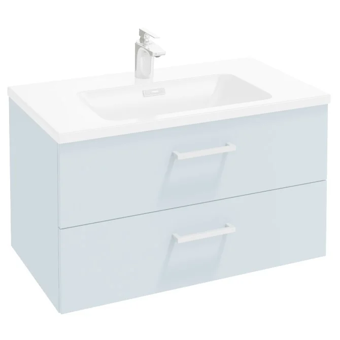 Vox, тумба под раковину, подвесная, 2 ящика, блестящий белый, 80 см, изогнутая ручка, арт. EB2078-R1-N18