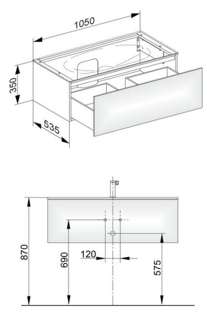Тумба под раковину Keuco Edition 11 31351WW0100, 1050х350х535 мм