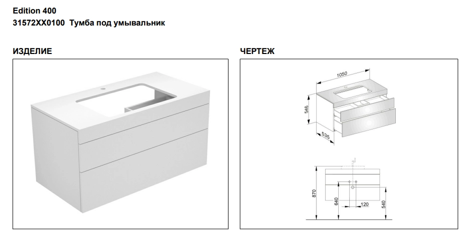 Тумба под раковину Keuco Edition 400 31572XX0100, 1050х546х535 мм
