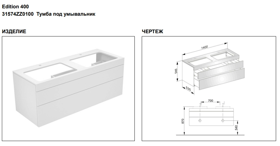 Тумба под раковину Keuco Edition 400 31574ZZ0100, 1400х546х535 мм