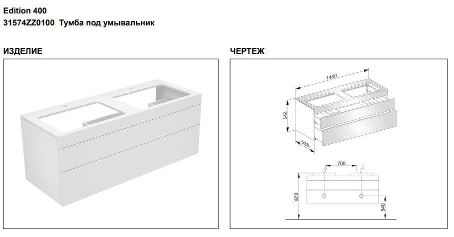Тумба под раковину Keuco Edition 400 31574ZZ0100, 1400х546х535 мм -->