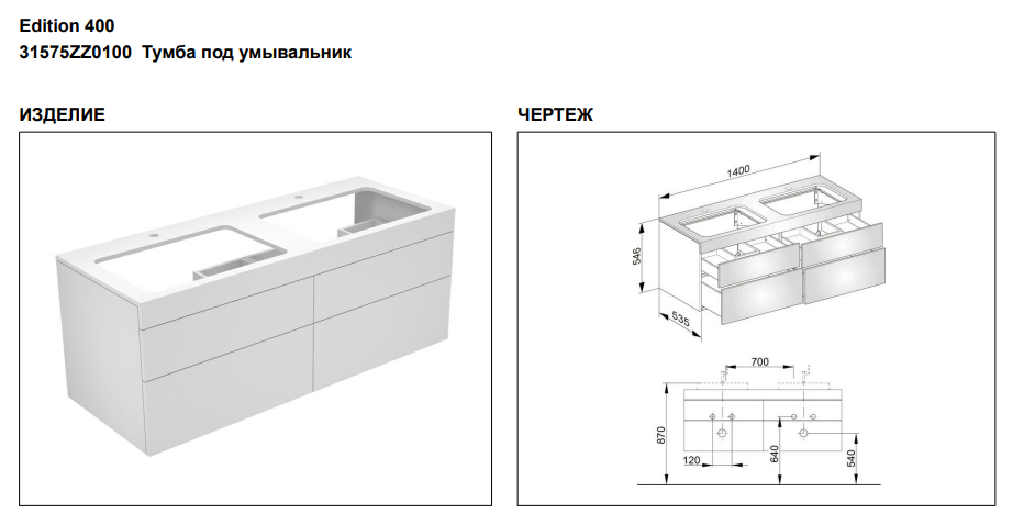 Тумба под раковину Keuco Edition 400 31575ZZ0100, 1400х546х535 мм -->
