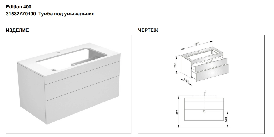 Тумба под раковину Keuco Edition 400 31582ZZ0100, 1050х546х535 мм