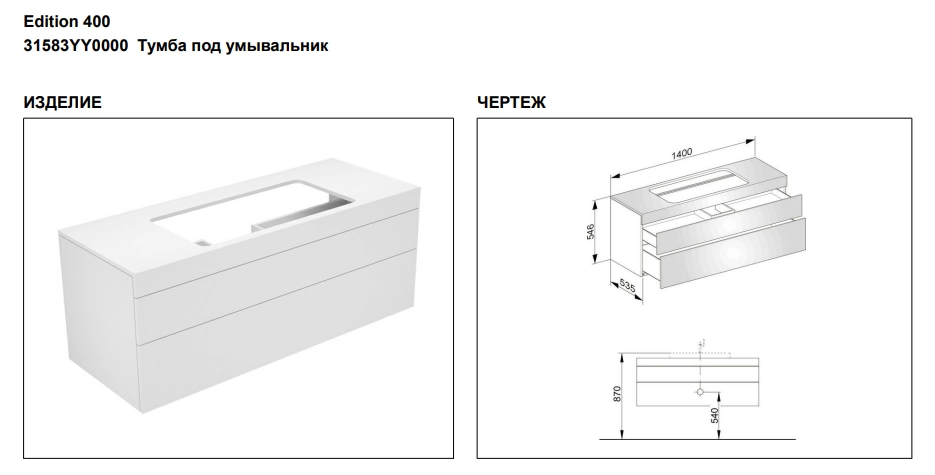 Тумба под раковину Keuco Edition 400 31583YY0000, 1400х546х535 мм