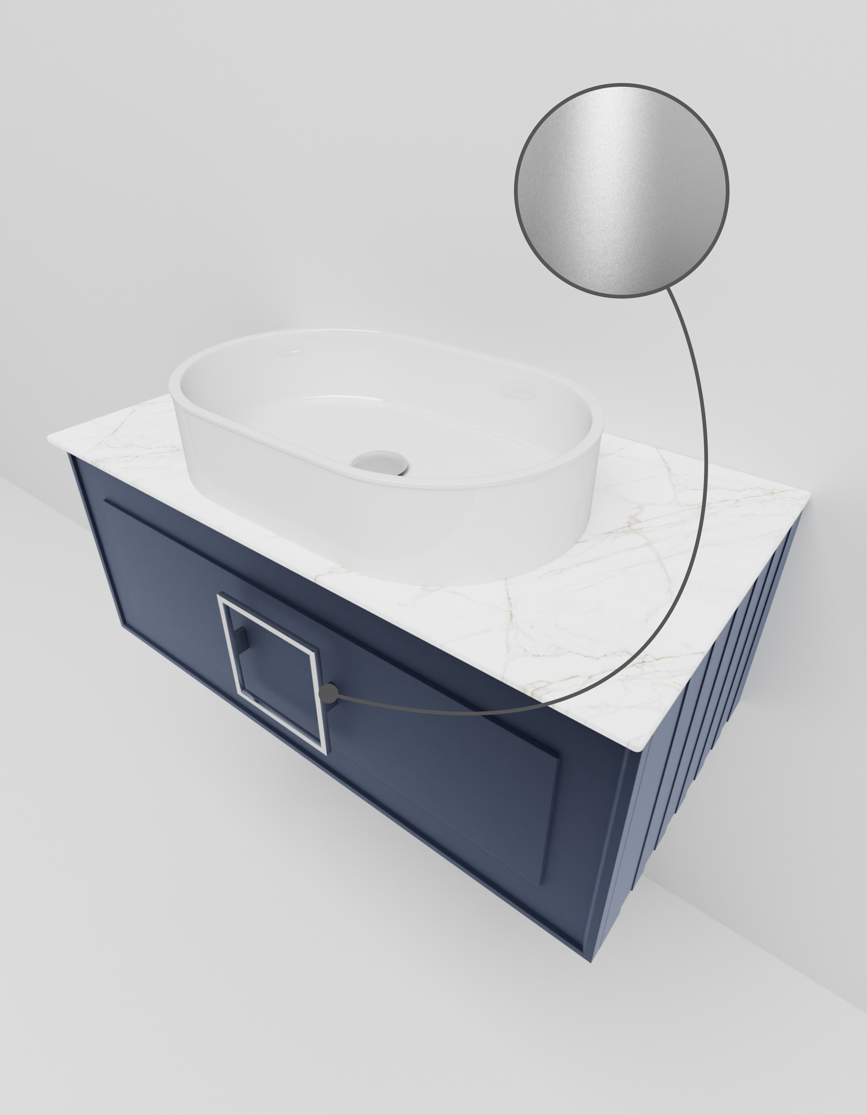 Тумба под раковину La Fenice Cubo Blu Grigio 80 NFNC-01-CUB-BG-80-1-GG синяя матовая с ручкой хром и белой столешницей