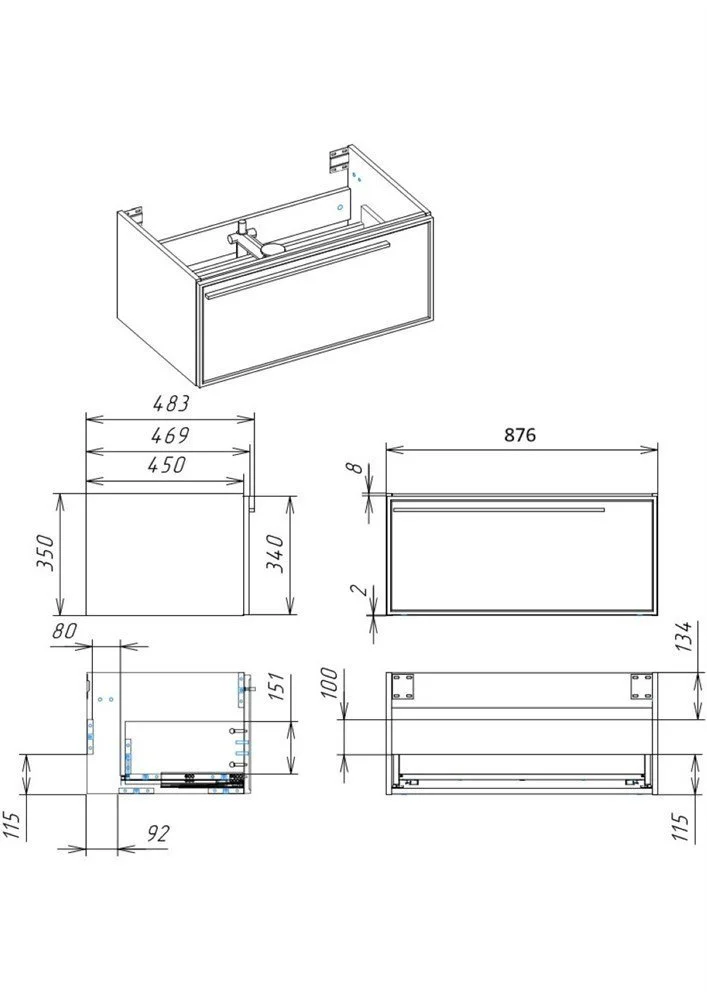 Тумба, ручка, сифон Prevex, набор для монтажа ( монтажная планка, дюбеля, саморезы)